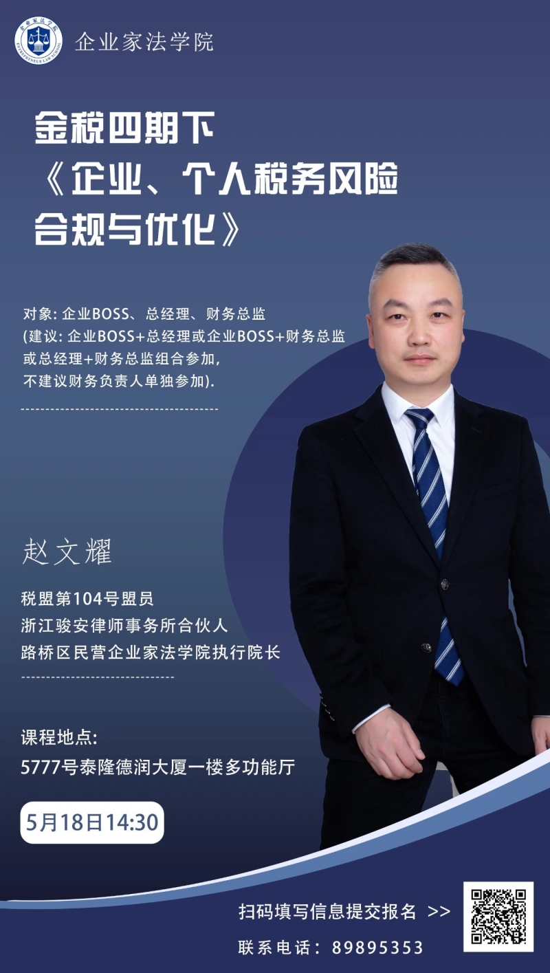 课程报名 |《金税四期下,企业、个人税务合规与优化》课程再启,欲报从速